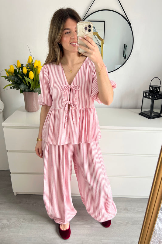 CONJUTO RAYAS ROSA Y MARRÓN