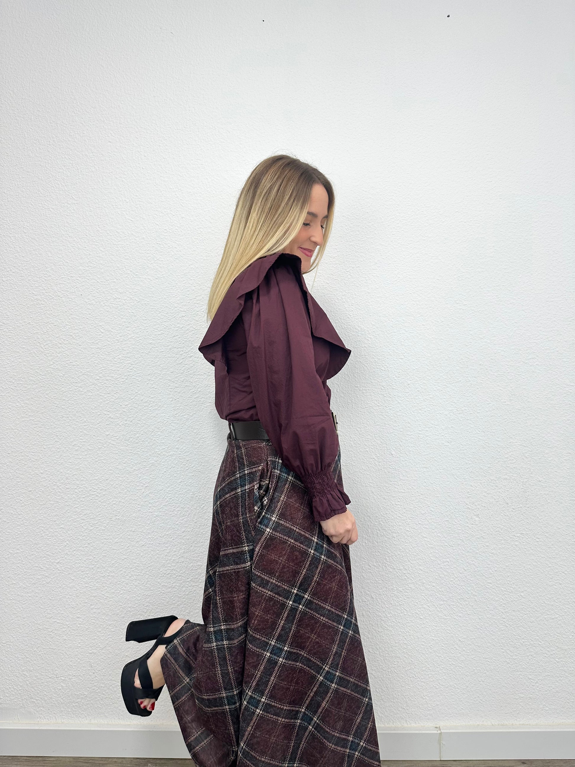 FALDA CUADRO CARMEN TINTO